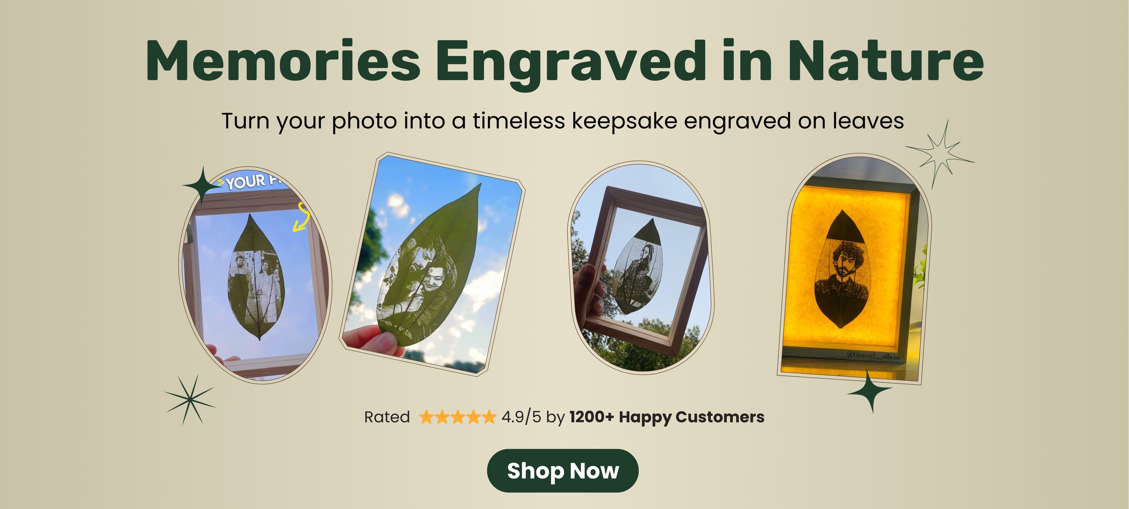 Your Picture on Leaf brings your memories to life in a natural and artistic way. Each piece is made with real preserved leaves and framed to keep your photo safe for years.